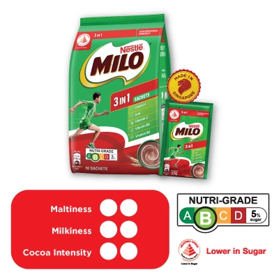 Experience the great taste of MILO® 3 IN 1 with the perfect balance of maltiness, milkiness and cocoa.