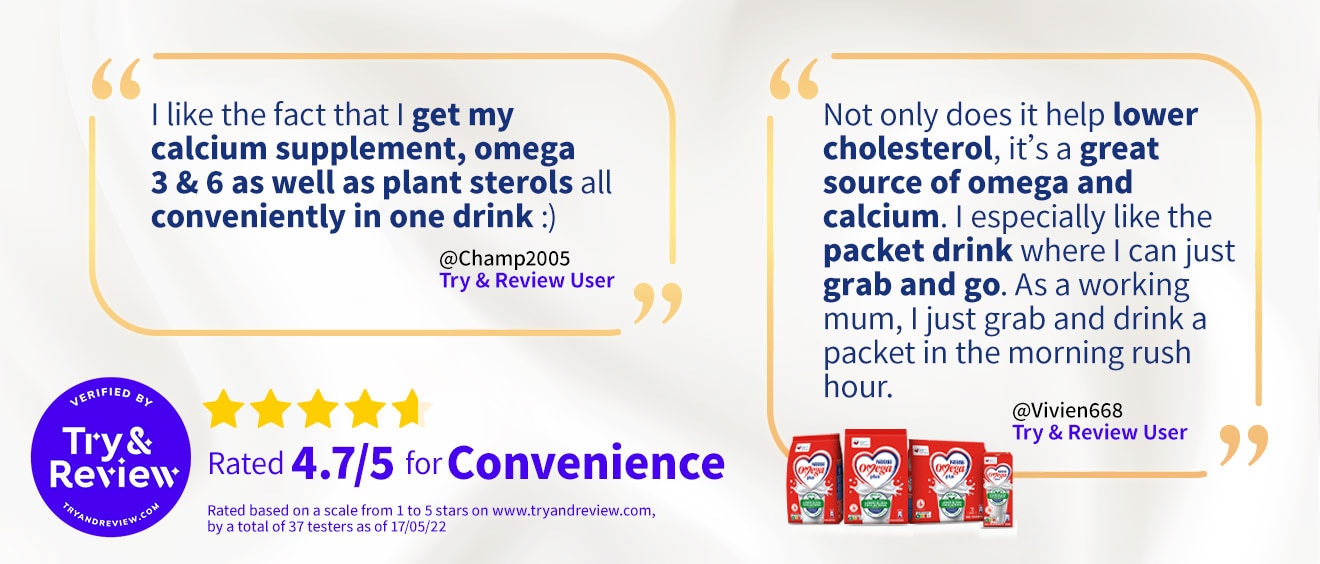 2 servings of Nestlé Omega Plus ActiCol contains 1.2g of plant sterol, which is scientifically proven to help lower cholesterol (Thomsen et al, 2004). ActiCol® refers to plant sterol that has similar structure to cholesterol. It reduces absorption of cholesterol from small intestine into the body.